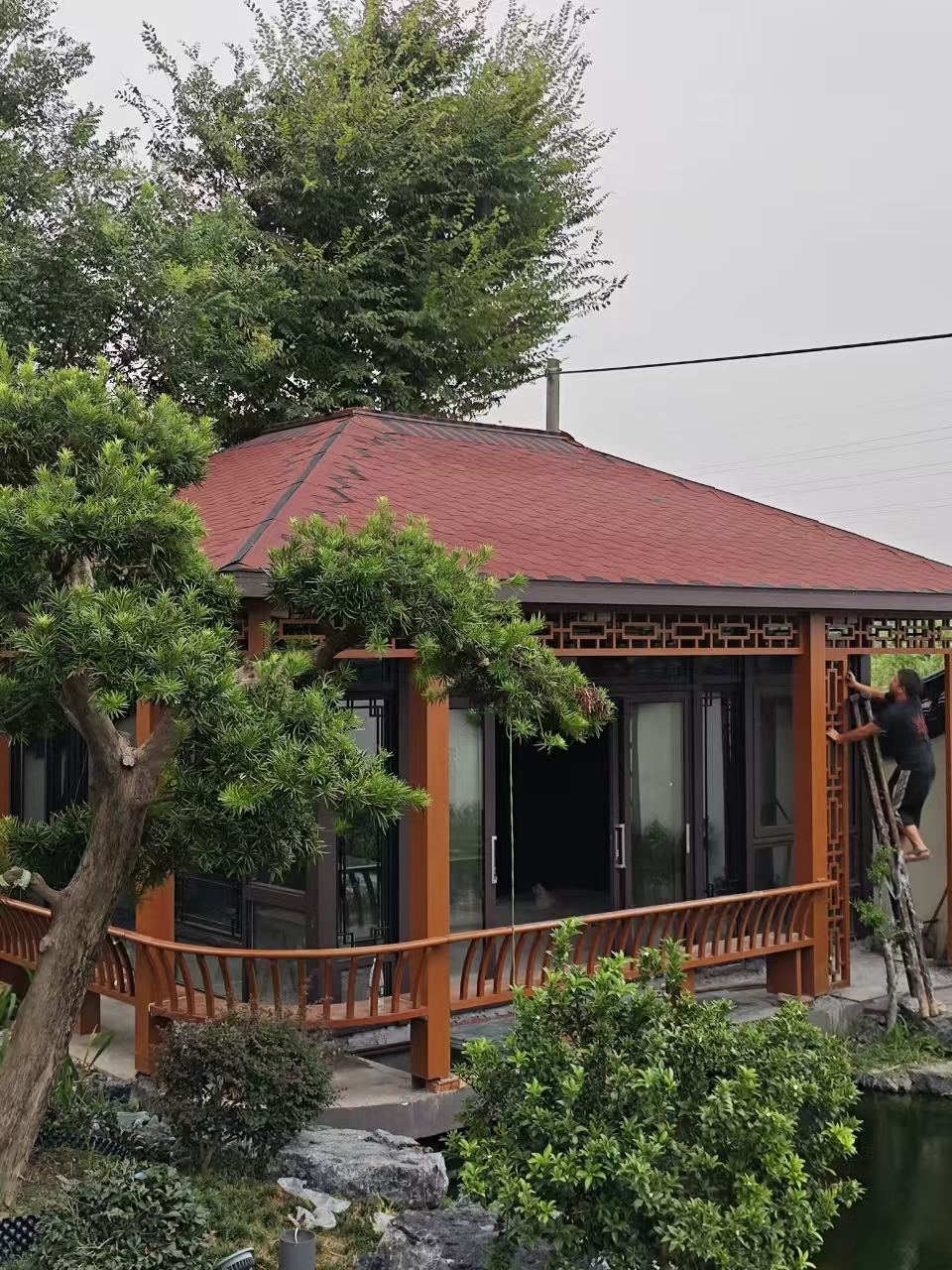 中式传统风格的铝合金凉亭则蕴含着深厚的文化底蕴,它借鉴了古代建筑的元素,如木质纹理等,展现出东方文化的含蓄与内敛。在中式庭院中,铝合金凉亭常常与假山、流水、亭台楼阁等元素相结合,营造出一种宁静、悠远的意境。坐在中式铝合金凉亭下,品一杯香茗,读一本好书,感受着微风的轻抚,仿佛时间都为之静止,让人忘却了尘世的烦恼。