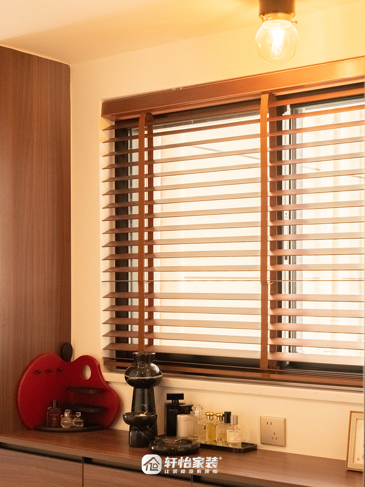 推开门,暖光吊灯与胡桃木玄关柜便映入眼帘,百叶窗滤过的光影与精心摆放的摆件,共同勾勒出静谧的归家仪式感,瞬间让人卸下疲惫。