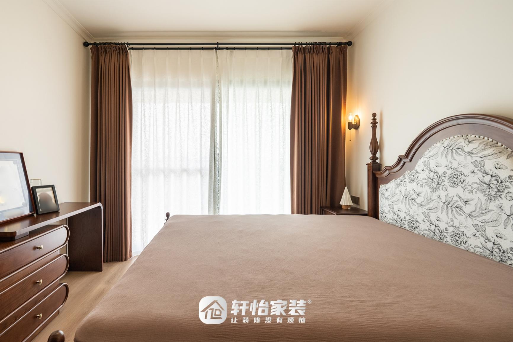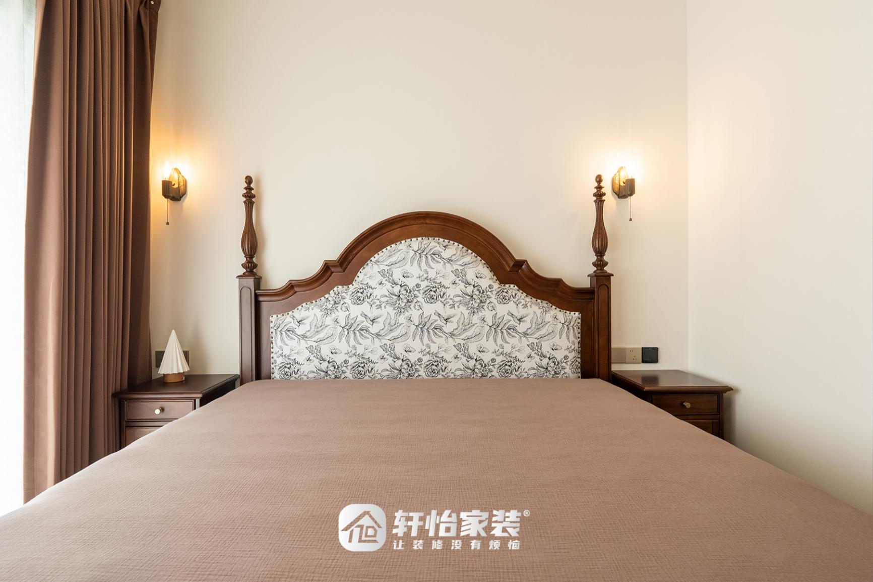 主卧延续了整体的中古基调,胡桃木家具与素雅的花纹壁纸或床品相得益彰,浪漫气息悄然流淌。
