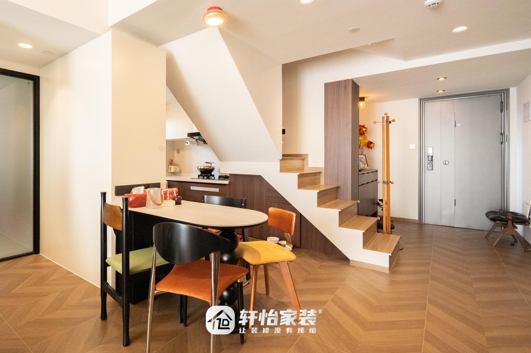 拆除多余隔断后,客餐厅地面通铺木质地板,让纹理自然延伸,塑造出轻盈的流动感。