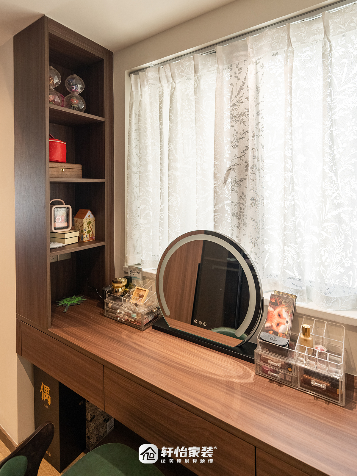 通过拆除隔断,不仅获得了强大的收纳系统,还成功规划出一个靠窗的独立梳妆区,充分满足了女主人的日常生活需求。