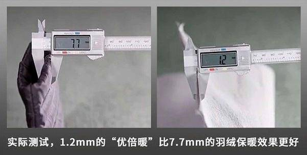 从2019年1月15日到2019年3月15日,研发团队在北京进行了出色的保暖穿着体验。在此期间,北京的平均气温为-8至5度,风为3-5,天气寒冷。 两个月的穿着体验,保暖效果和舒适度远远超出理论值,1.38mm厚度的优倍暖填充在面料与里布之间,保暖率相当于每平米充90克90#羽绒的保暖效果。