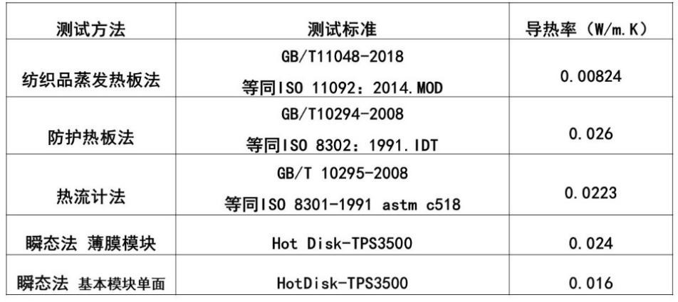 使用GB/T11048-2008国家标准测试,导热系数为0.00824 W /(mK)。从理论上讲,这两层的热厚度极佳,约为1.38mm,相当于轻型羽绒服。保暖率。